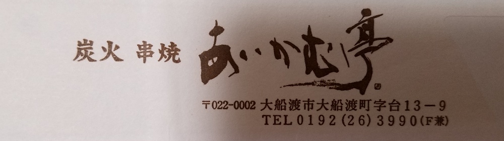 岩手県大船渡市に構える人気老舗串焼店の暖簾・幟・箸袋・焼酎ラベルなどを揮毫。